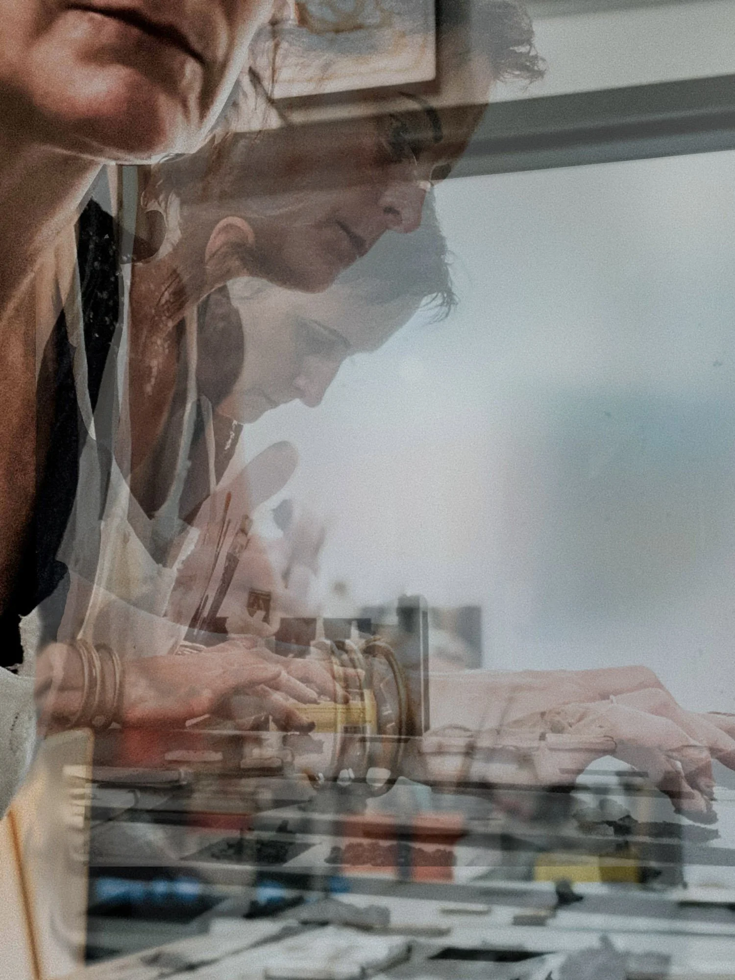 Through mixed media—painting, drawing, ceramics, and fiber—each material conveys a facet of our inner world: fluid paint evokes openness, solid ceramics form protective barriers, and woven fibers act as filters.